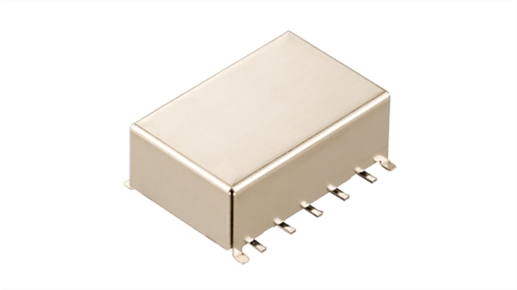 Relè RF alte frequenze 1GHz Montaggio superficiale, contatto DPDT, tensione bobina 5V cc. Frequenza massima 1GHz, resistenza bobina 178 Ω, resistenza contatti 75 mΩ, perdita di inserzione 0,3 dB, isolamento 30 dB, potenza operativa nominale 140 mW. Utilizzato in comunicazione e apparecchiature di misurazione. Marchio Panasonic, codice costruttore ARA200A05.