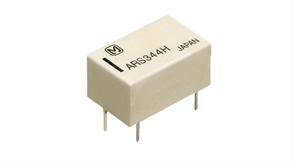 Relè RF alte frequenze 3GHz, montaggio su circuito stampato, contatto SPDT, tensione bobina 4.5V cc. Impedenza 50 ohm, resistenza bobina 101,3 ohm, resistenza contatti 100 mΩ, perdita di inserzione 0,35 dB, isolamento 35 dB. Utilizzato in apparecchiature di trasmissione, comunicazione e misurazione. Codice costruttore ARS144H, marchio Panasonic.