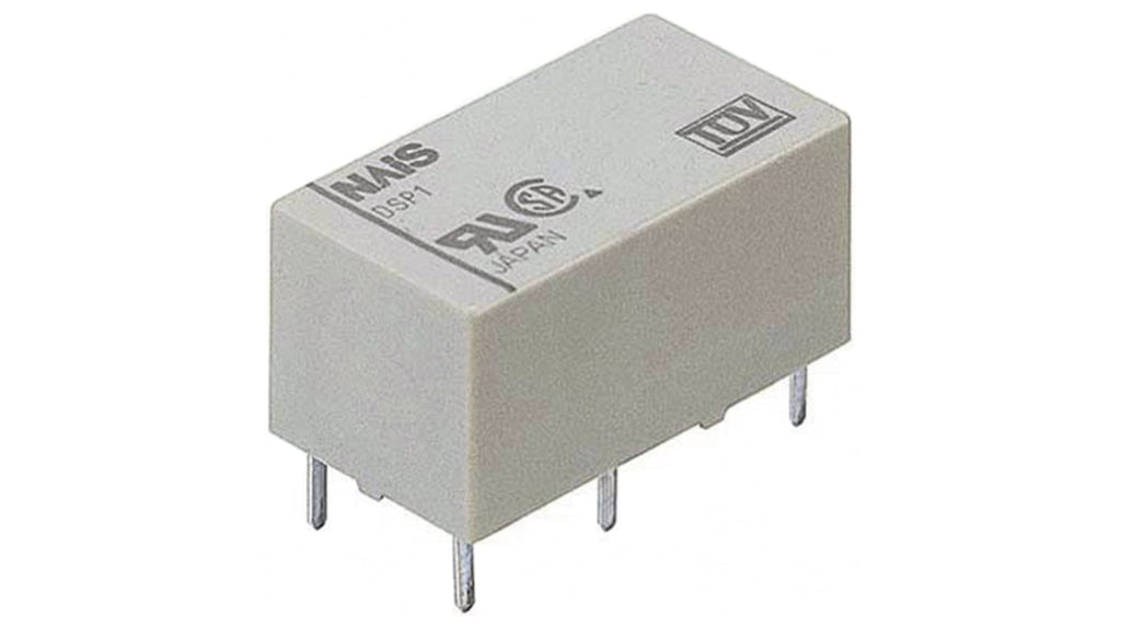 Relè di potenza Panasonic, SPDT, bobina 12V cc, montaggio su circuito stampato. Corrente di commutazione 5A, potenza di commutazione massima CC 150 W, potenza di commutazione massima CA 1,25 kVA. Dimensioni 20,2 x 11 x 10,5 mm, resistenza bobina 480Ω, potenza bobina 300mW. Isolamento bobina-contatto 3kV RMS, temperatura operativa da -40°C a +65°C. Struttura sigillata per lavaggio automatico.