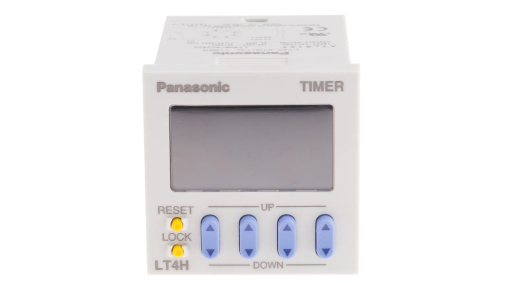 Timer digitale multifunzione a pannello, tensione 24V AC, intervallo di temporizzazione 9.999 secondi a 999.9 ore, 2 poli SPDT, corrente massima 5A, grado di protezione IP66, display LCD retroilluminato, configurazione contatto SPDT, connettore a 8 pin, temperatura operativa da -10 a +50 gradi Celsius, conforme a standard CE e norme EN50081-2 e EN50082-2.