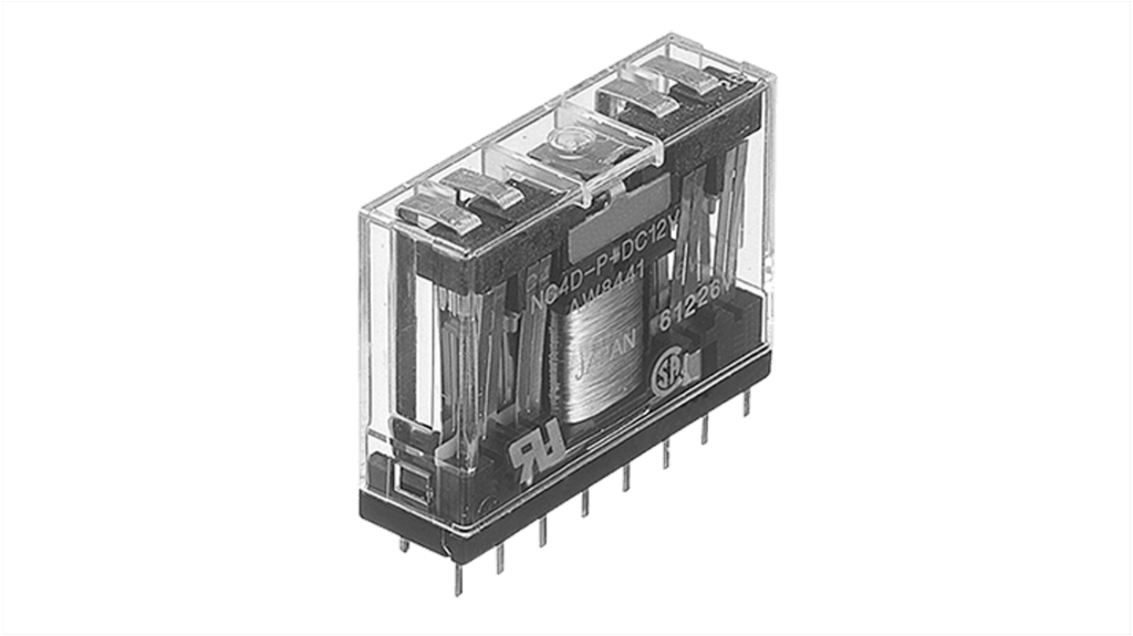 Relè monostabile Panasonic, 4PDT, bobina 24V cc, montaggio su circuito stampato, contatti bifurcati doppi, corrente di commutazione 30mA, non bistabile. Terminali a innesto doppi e per scheda PC disponibili. Utilizzato in apparecchiature di alimentazione elettrica, industriali e dispositivi di misurazione.