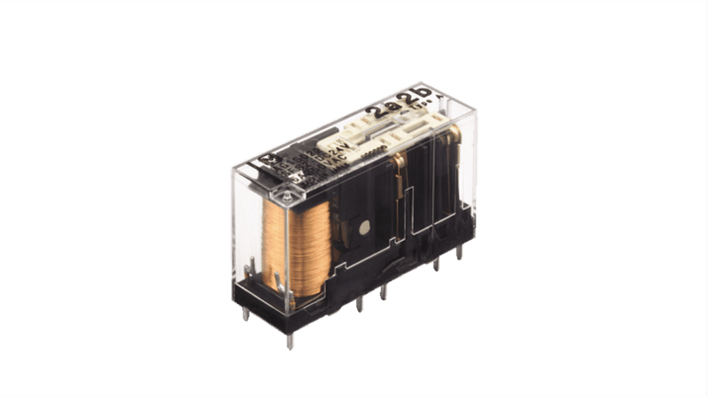 Relè contatti guidati per montaggio su circuito stampato, serie SFS, tensione nominale bobina 24 V c.c., capacità di commutazione 6 A a 250 V c.a., potenza di commutazione massima 180 W, potenza di funzionamento nominale 360 mW (4 Poli), 500 mW (6 Poli), tempo di risposta massimo 8 ms, elevata resistenza agli urti min. 200 m/s2, struttura contatti a guida forzata, disponibile con indicazione LED e/o diodi incorporati.