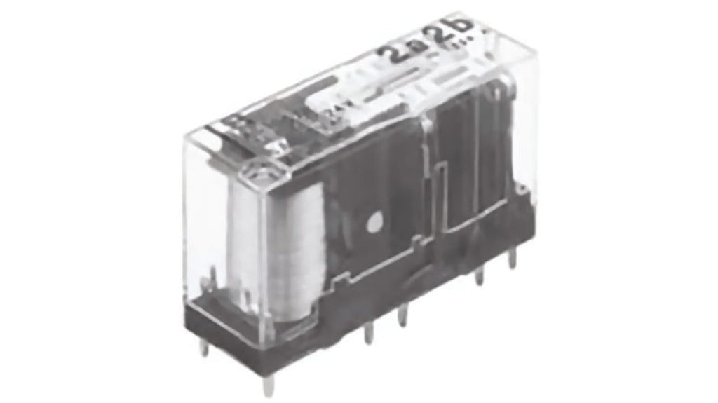 Relè contatti guidati a montaggio su circuito stampato, tensione bobina 24V cc, configurazione 5PST, SPST, 6 poli, corrente di commutazione 6A, potenza di commutazione massima 1,5 kVA, potenza di funzionamento nominale 500 mW, dimensioni 50mm x 24mm x 13mm, resistenza bobina 1,152 kΩ, isolamento bobina-contatto 4kV rms, temperatura operativa da -40°C a +85°C, vita operativa 500000 cicli, materiale contatto lega di argento.