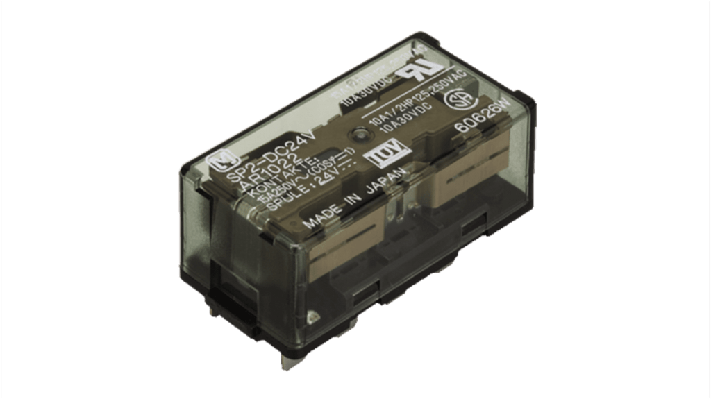 Relè monostabile Panasonic, DPDT, bobina 24V cc, montaggio a innesto. Tensione bobina 24V cc, configurazione contatto DPDT, corrente di commutazione 12.5mA, tipo di montaggio a innesto. Compatibile con connettori femmina terminali, installabile su guida DIN con scheda di montaggio. Prodotto della serie SP di relè di potenza.