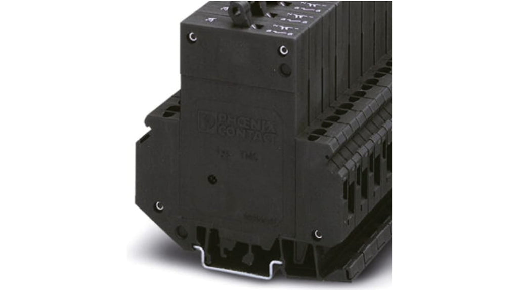 Interruttore automatico termomagnetico Phoenix Contact, TMC 1, 1 polo, corrente nominale 16A, tensione 65 V dc e 250 V ca, montaggio su guida DIN, larghezza 12,5 mm, profondità 96 mm, lunghezza 82,5 mm, collegamento a vite, segnalazione a distanza integrata, piedino universale per montaggio su NS 32 o NS 35. Adatto per protezione di motori, valvole e inverter di frequenza. Codice costruttore 0914183.