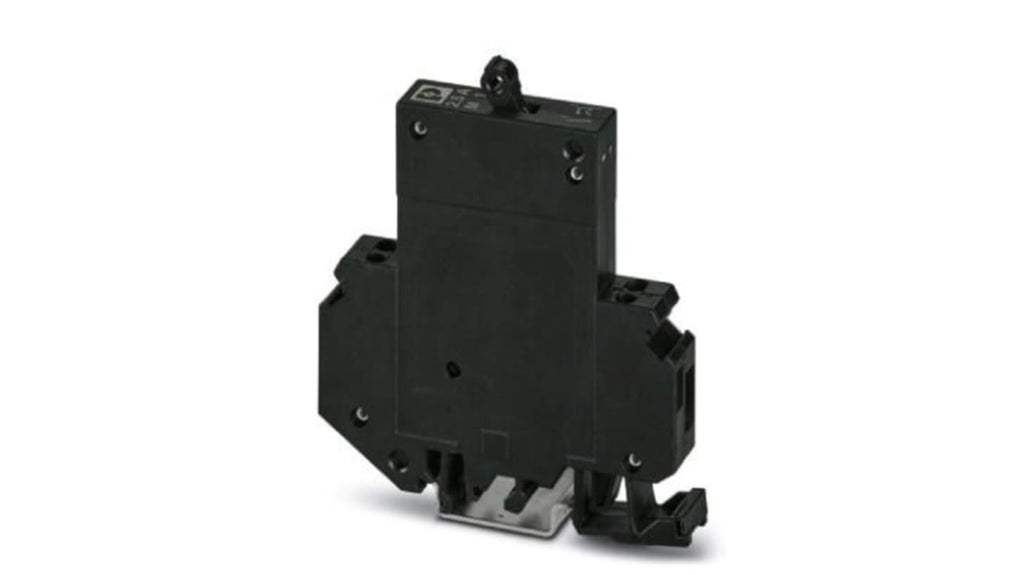 Interruttore automatico termomagnetico Phoenix Contact M1, montaggio su guida DIN, 1 polo, larghezza 12,5 mm, collegamento a vite, segnalazione a distanza integrata, piedino universale per NS 32 o NS 35. Tensione nominale 250 V c.a. / 65 V c.c., corrente 2,5 A, resistenza dielettrica 3000 V c.a., capacità di commutazione cortocircuiti 5000 A (UL 1077 277 V c.a.) / 2000 A (UL 1077 65 V c.c.), tensione di picco nominale 2,5 kV, colore nero.
