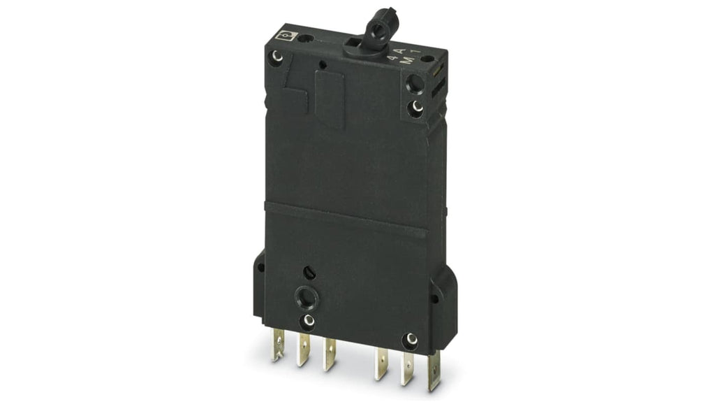 Interruttore automatico termico magnetico Phoenix Contact, 2 poli, 4A, tensione nominale 65 V dc e 250 V ca, serie TMCP 1 M1. Grado di protezione IP30, montaggio su base, manutenzione facile. Dimensioni: larghezza 12.5 mm, lunghezza 115 mm, profondità 121 mm. Tecnologia SFB per protezione da sovracorrenti e cortocircuiti, scatto magnetico rapido. Codice costruttore 0915797.