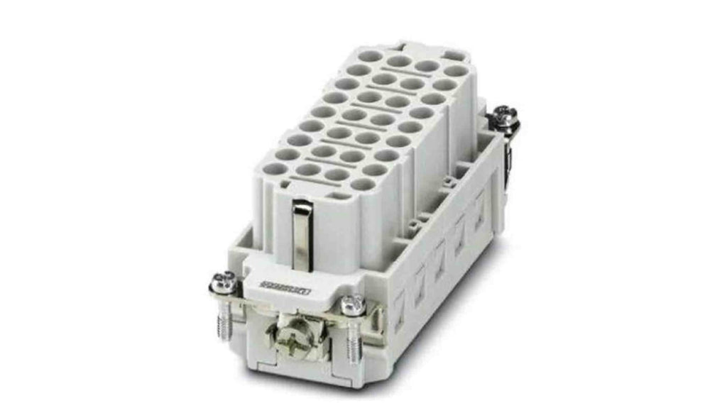 Inserto contatti femmina Phoenix Contact, serie HC, 16A, 32 vie, tensione nominale 500 V, 32 contatti di potenza, collegamento a innesto, temperatura operativa da -60 a 85 gradi Celsius, grado di infiammabilità UL 94 V0, orientamento ad angolo diritto. Non fa parte della gamma "complete Line". Codice costruttore 1014421.