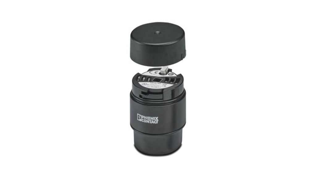 Base per assemblaggio di tubi orizzontali e di terzi, destinata a torri di segnalazione modulari, collegamento meccanico ed elettrico tramite sistema di bloccaggio a baionetta, montaggio su superficie di installazione, scatola di derivazione o staffa, materiale PA-GF, colore nero, tipo di montaggio su base, metodo di collegamento a innesto, qualsiasi posizione di montaggio.