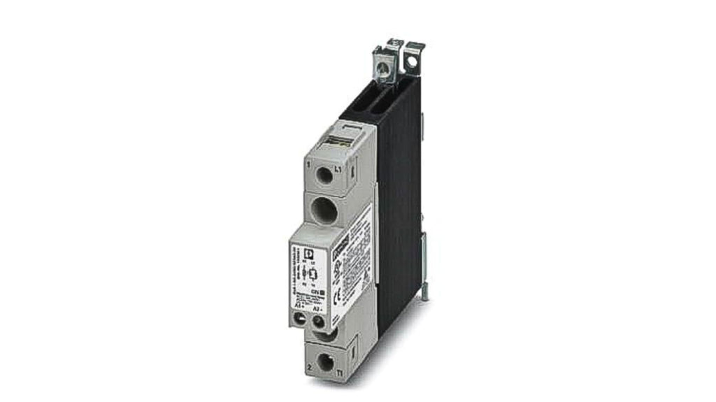 Contattore monofase a stato solido, tensione di ingresso 24 V CC, corrente di uscita 30 A, interruttore a tensione zero, montaggio su guida DIN, dimensioni 103 mm x 17.8 mm x 110 mm, corrente di ingresso 12 mA, tensione di carico 42-660 V CA, temperatura operativa da -30 a +70 gradi Celsius. Codice costruttore 1032921, marchio Phoenix Contact, serie ELR.