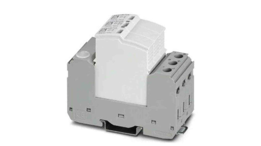 Dispositivo di protezione da sovratensioni, tipo 2, per montaggio su guida DIN, corrente massima di sovraccarico 40kA, corrente di scarica 20kA. Dimensioni 97.9 x 37.3 x 74.5 mm, temperatura operativa da -40 a +80 gradi Celsius, grado di protezione IP20, umidità operativa dal 5% al 95%. Marchio Phoenix Contact, codice costruttore 1033788.