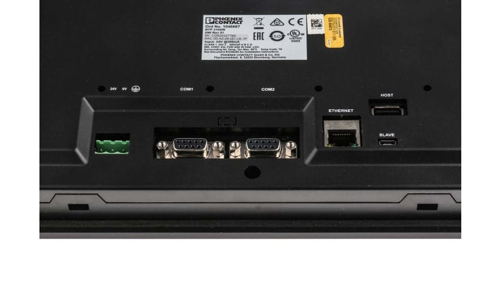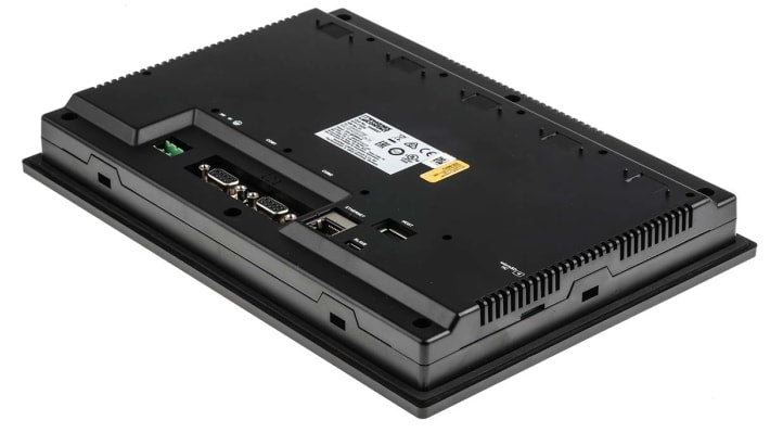 Display HMI touch screen, 10,2 pollici, serie BTP 2102W, display TFT, risoluzione 800 x 480 pixel, 262144 colori, processore ARM9 i.MX28 a 454 MHz, 5 porte (2x COM, 2x USB, 1x Ethernet RJ45), memoria onboard 128 MB, retroilluminazione, grado di protezione IP20 e IP66, temperatura operativa da 0 a 50 gradi Celsius, alimentazione 24 V c.c., dimensioni 268 x 5 x 190 mm, codice produttore 1046667.