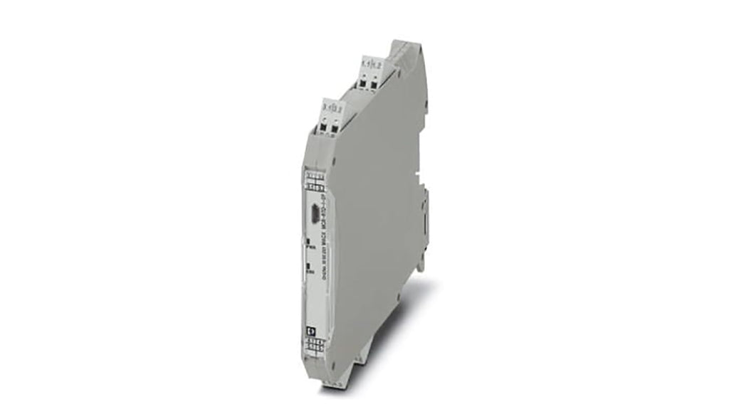 Trasduttore di temperatura, converte segnali da rilevatori di temperatura a resistenza e resistori in segnali analogici 0-4-20 mA, liberamente programmabile, collegamento a innesto, isolamento elettrico a 3 vie, montaggio su guida DIN. Gamma di ingresso 0-50 kΩ, -200-+850°C, gamma di uscita 0-20 mA, 4-20 mA, alimentazione 24V cc, certificazione ATEX e IECEx, temperatura di esercizio -40-+70°C.