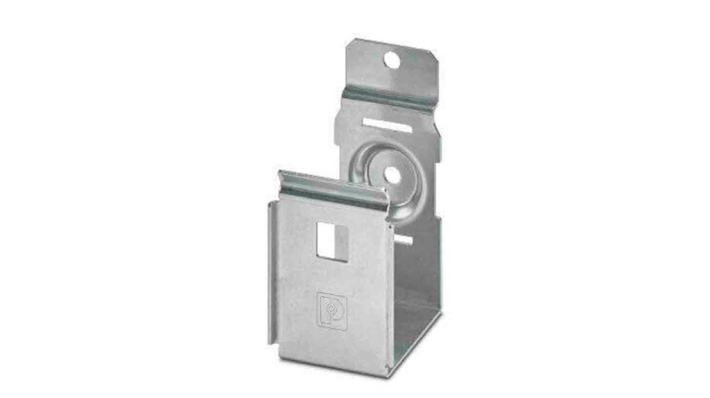 Piastra di montaggio per guida DIN, adattatore per guida DIN FL 40, progettata per montaggio a filo su pannello, compatibile con prodotti di 40 mm di larghezza, facile e sicuro da installare, serie FL DIN, accessorio per guida DIN. Codice costruttore 1085486, marchio Phoenix Contact.