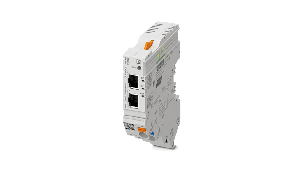 Modulo di alimentazione per sistema di interruttori CAPAROC, tensione 12 V CC, interfaccia PROFINET, dimensioni 111,3 x 24,8 x 132,4 mm, montaggio senza attrezzi, integrazione facile grazie a pacchetto dati digitali, personalizzazione con segnali singoli e reset. Progettato per l'industria dell'automazione e dell'elettronica.