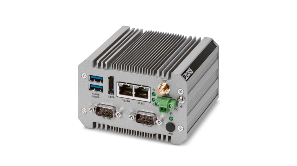 Computer industriale senza ventola, processore Intel Celeron N3350 1,10/2,40 GHz, RAM 4 GB LPDDR4, memorizzazione interna 32 GB eMMC, grado di protezione IP30, alimentazione 12-30 V, interfacce Ethernet e USB, porta COM, dimensioni 99 x 92 x 63 mm, serie Basicline, codice costruttore 1130669.