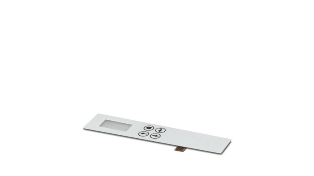 Tastiera a membrana autoadesiva con tecnologia in argento conduttivo, layout 2 x 2, 4 tasti, matrice di uscita. Materiale in poliestere, finestra trasparente per display TFT da 0,96 pollici. Grado di protezione IP20, non illuminata. Aletta di collegamento a 5 posizioni, personalizzabile tramite configuratore. Utilizzabile in armadietti di controllo. Codice costruttore 1215684, marchio Phoenix Contact.