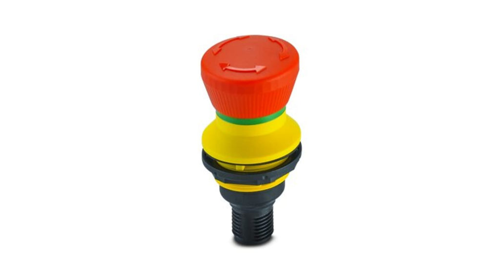 Pulsante di arresto di emergenza Phoenix Contact, dispositivo di commutazione elettromeccanico, montaggio a pannello, diametro foro 22mm, temperature d'esercizio da -25 a 70 gradi Celsius, serie ESS. Utilizzato per spegnere o arrestare in modo sicuro macchine e sistemi, garantendo la sicurezza in caso di emergenza.