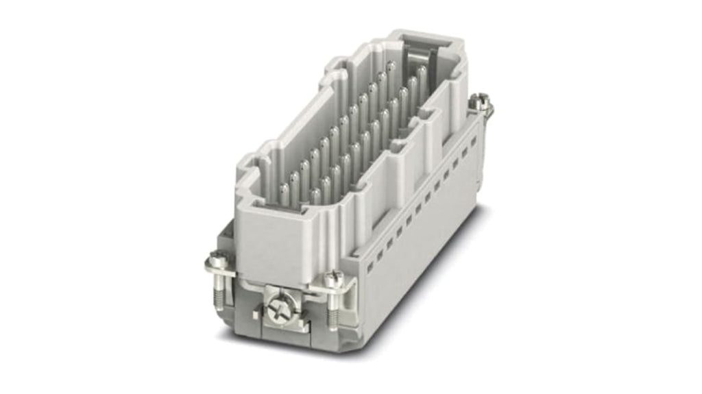 Inserto contatti maschio HEAVYCON, serie HC, 16A, 24 + PE-pos, collegamento a innesto, codifica rapida con profilo in plastica, collegamento del conduttore senza utensili, collegamento di prova per spina di prova da 2 mm, tensione nominale 500 V.