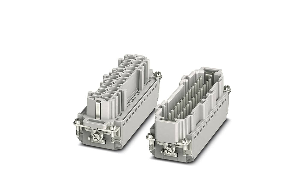 Connettore alimentazione set EVO, 24 pin, corrente nominale 16A, tensione nominale 500,0 V, serie B24, corpo in plastica, montaggio a pannello, inserti contatti a innesto, opzione di etichettatura 9 x 20 mm, peso contenuto, ridotto rischio di condensa, inserti in metallo per contatto PE, resistente alla corrosione, plastica senza alogeni. Codice costruttore 1408794, marchio Phoenix Contact.