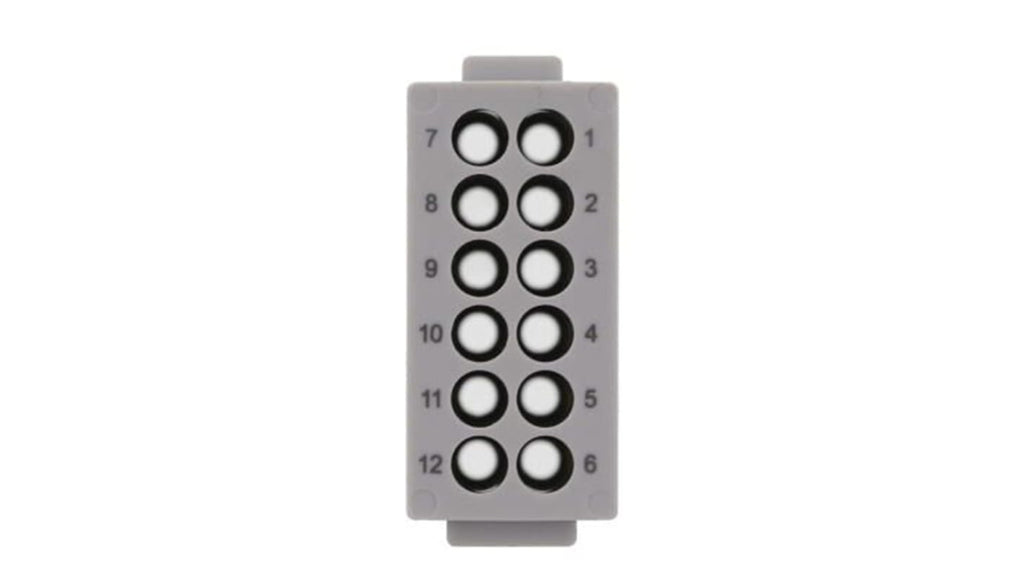 Modulo connettore femmina, serie HC-M-12, 12 vie, corrente nominale 10 A, tensione 250 V, collegamento a crimpare, protezione IP54, contatti in lega di rame placcati argento, numero di contatti 12, formato polo 12P, 2 file. Applicazione per segnali. Codice costruttore 1414355, marchio Phoenix Contact.