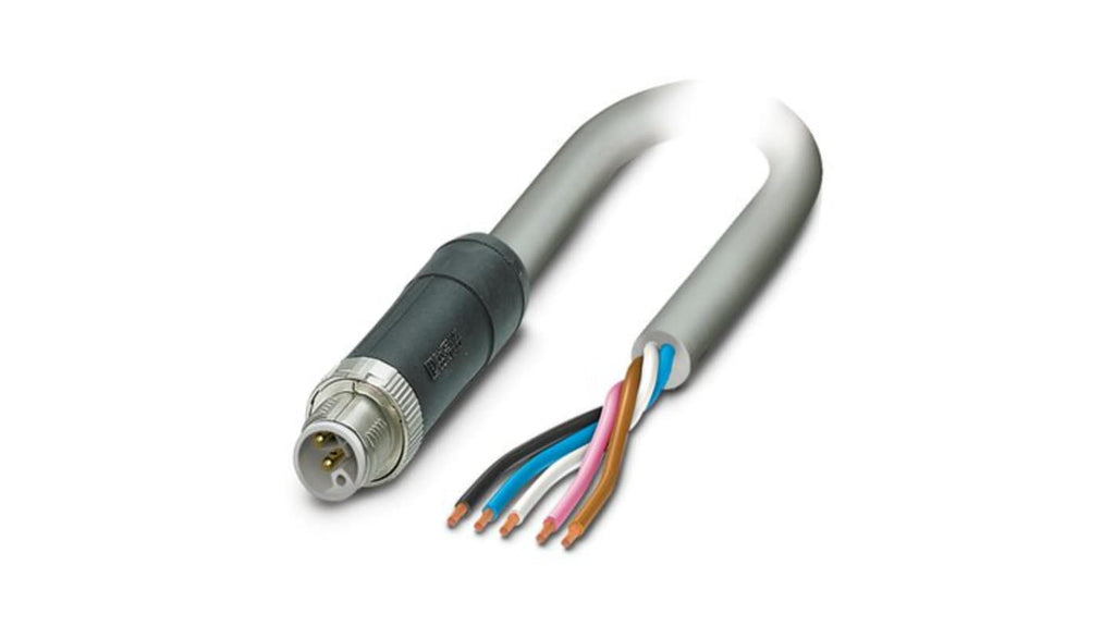 Cavo di potenza Phoenix Contact, 5 conduttori, 5 x 2,5 mm², lunghezza 3 m, corrente massima 16 A, tensione 63 V, materiale guaina in cloruro di polivinile PVC, colore grigio, temperatura operativa massima +80°C, progettato per applicazioni a corrente continua, configurazione a 5 posizioni con codifica L per sicurezza, resistenza alla flessione e sollecitazioni meccaniche.