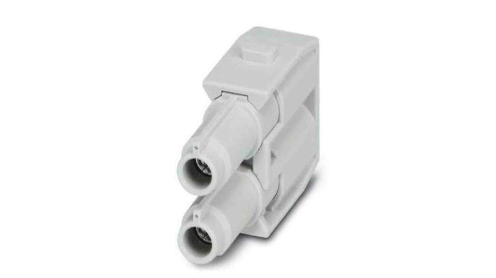 Inserto contatti femmina Phoenix Contact, serie HC, 70A, 2 vie, tipo di collegamento a vite assiale, tensione nominale 1000 V, corrente nominale 40 A, temperatura d'esercizio da -40 a 125 gradi Celsius, grado di infiammabilità UL 94 V0, orientamento ad angolo diritto. Non fa parte della gamma "complete Line" di Phoenix Contact.