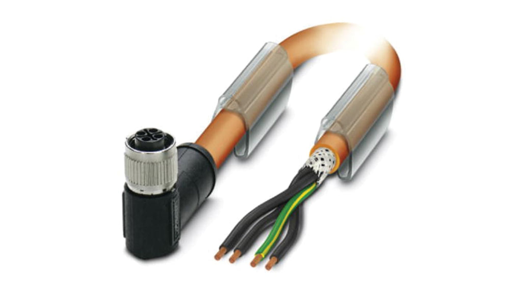 Cavo sensore/attuatore, 4 conduttori, connettore femmina M12 ad angolo, lunghezza 10 m, diametro esterno 9.7 mm, schermato con tecnologia avanzata, senza alogeni, colore arancione RAL 2003, corrente nominale 12 A, tensione nominale 630 V, protezione IP65/IP67, resistente agli oli, sezione conduttore 1.5 mm², materiali guaina PUR e conduttore rame nudo.