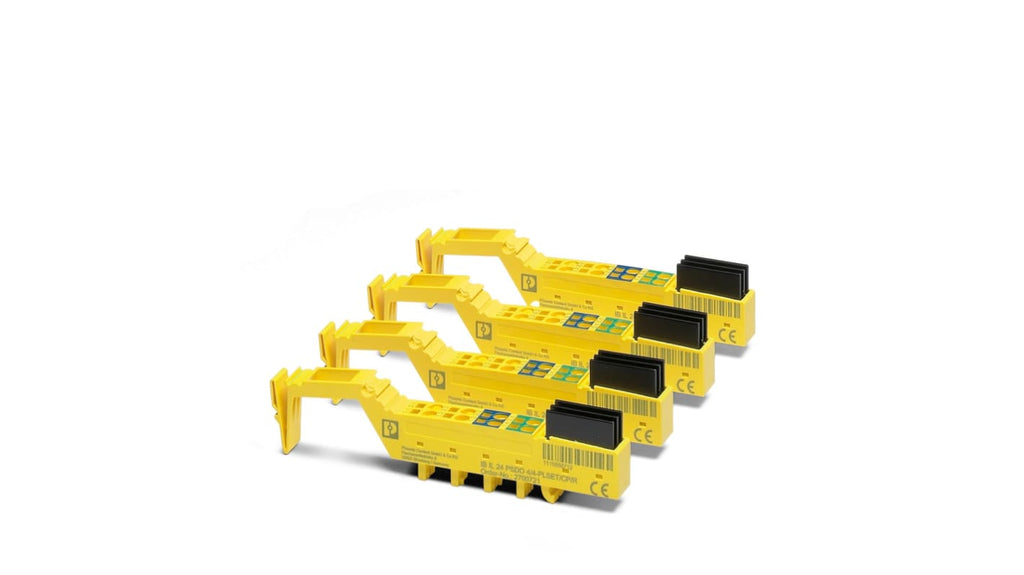 Connettore Phoenix Contact, IP20, design compatto, gabbia a molla per connessioni affidabili, quattro spine in linea con elettronica di scarica integrata, riduzione del tempo di scarica per canale, grado di protezione IP20, conforme agli standard per la classe di protezione III, ottimizza le opzioni diagnostiche e il rilevamento dei guasti in applicazioni di sicurezza con carichi capacitivi esterni.