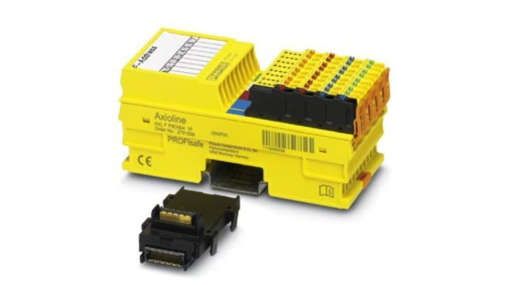 Modulo di sicurezza per PLC, digitale, quattro ingressi digitali sicuri per assegnazione a due canali o otto ingressi per canale singolo, temperatura ambiente da -35 a 60 gradi Celsius, grado di protezione IP20, dimensioni 121,1 x 53,6 x 54 mm, tipo uscita relè, progettato per sistemi PROFIsafe, codice costruttore 2701559, marchio Phoenix Contact.