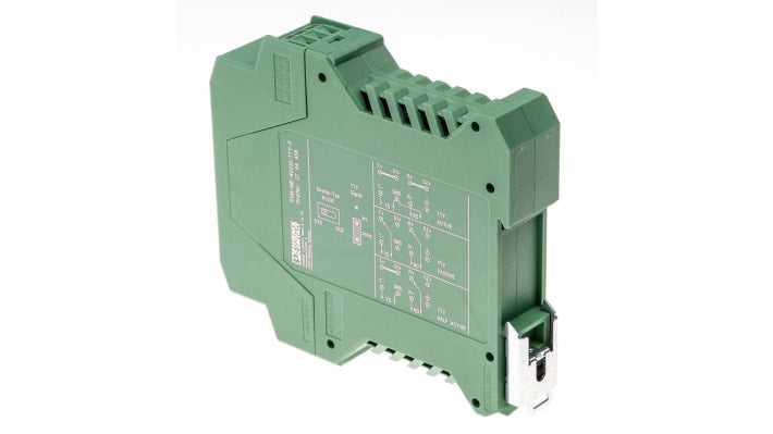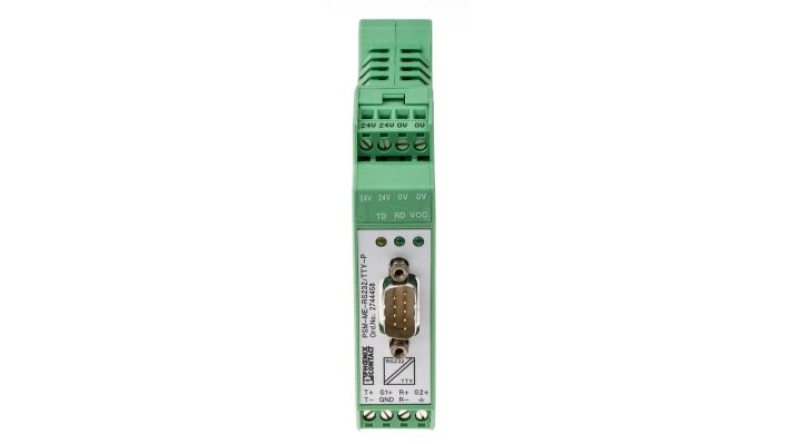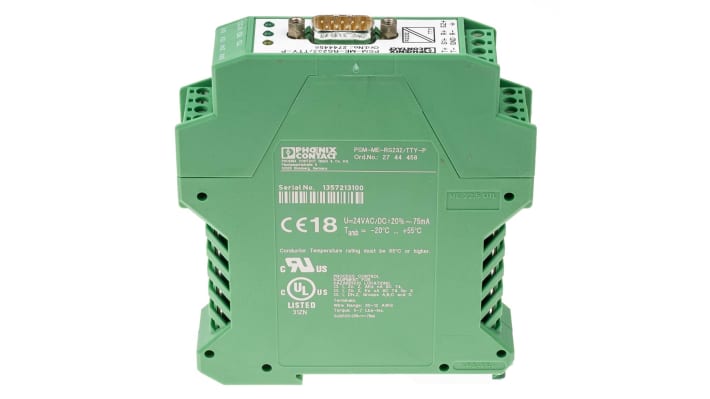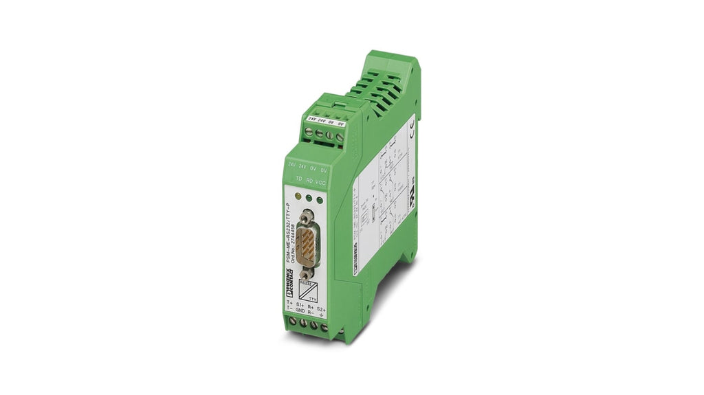 Condizionatore di segnale Phoenix Contact, convertitore d'interfaccia RS232-RS422 e RS232-RS485, montaggio su guida DIN, alimentazione 24V ca/cc, temperatura di esercizio 0-55°C, isolamento galvanico triplo, LED di stato, protezione contro sovratensioni fino a 2 kV, dimensioni 22,5 x 99 x 118,6 mm, grado di protezione IP20, compatibile con cavi 24-13 AWG, numero di canali 2, standard EAC. Codice costruttore 2744458.
