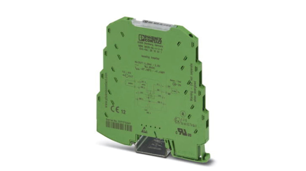 Amplificatore di isolamento segnale standardizzato Mini MCR, segnali di ingresso e uscita standardizzati, isolamento a 3 vie, collegamento a vite, larghezza totale 6,2 mm, alimentazione 24V cc, montaggio su guida DIN, gamma di ingresso 0 a 20mA, gamma di uscita 0 a 10V cc, temperatura di esercizio -20 a +65 gradi Celsius, autorizzato CE. Accessori inclusi: coperchio trasparente incernierato ed etichetta.