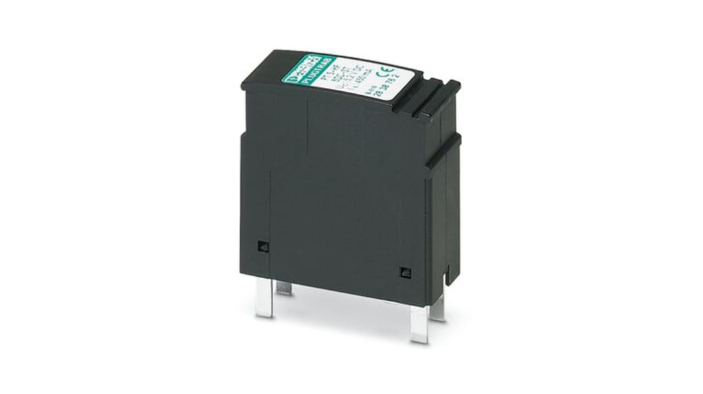 Dispositivo di protezione contro le sovratensioni. Corrente massima di sovraccarico 20kA, tensione nominale di protezione 5V cc, tipo di montaggio elemento su base. Connettori maschio PLUGTRAB PT-IQ con display a tre fasi per indicazione stato, compatibile con varianti di collegamento di massa diretto e indiretto. Marchio Phoenix Contact, codice costruttore 2838762.