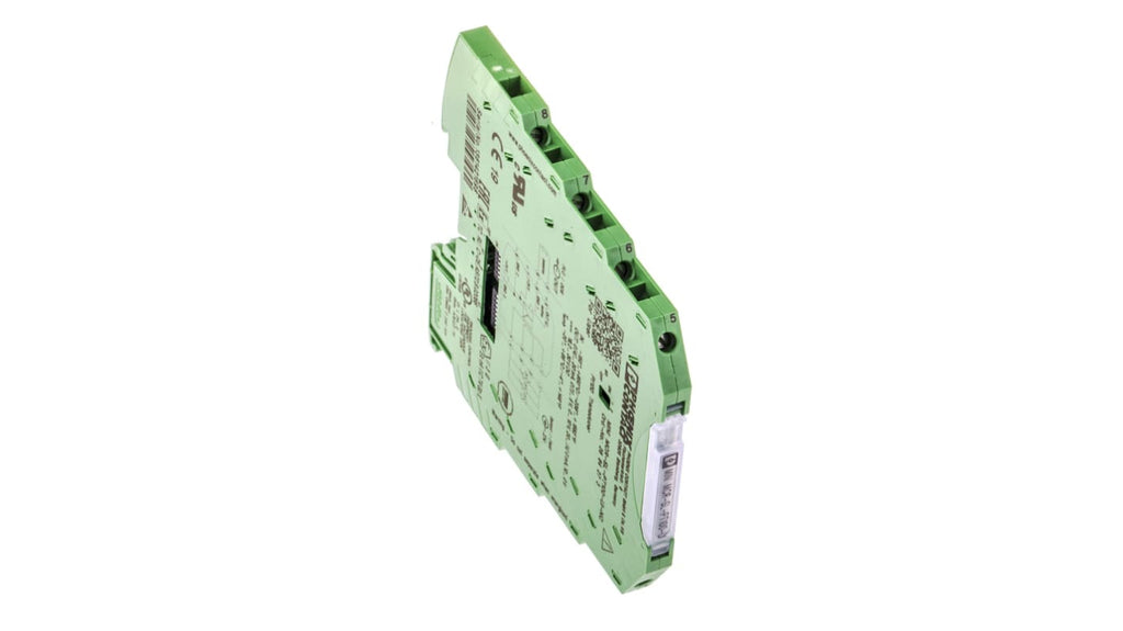 Condizionatore di segnale per PT100 e termocoppie J e K, alimentazione 24 V cc, montaggio su guida DIN, isolamento segnale a 3 vie, LED di diagnosi, collegamento a vite o a molla, dimensioni 6,2 mm di larghezza, intervallo di misurazione -150°C a +300°C, segnale di uscita 0 a 10 V e 0 a 20 mA, temperatura di esercizio -20°C a +65°C, grado di protezione IP20, materiale contenitore PBT.