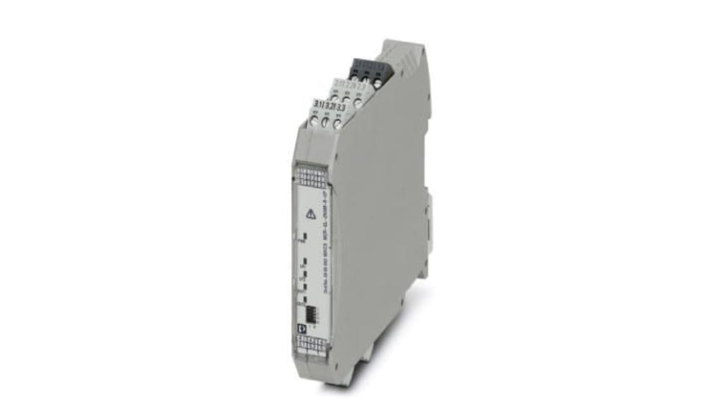 Condizionatore di segnale NAMUR a 2 canali con amplificatore di isolamento, alimentatore ad ampia gamma per sensori di prossimità e interruttori, uscita con relè a contatto di commutazione per ogni canale, rilevamento guasti di linea, collegamento a vite di isolamento a 3 vie, conforme a EN 61508 fino a SIL 2, gamma di ingresso 24 - 230V ca/cc, tensione di alimentazione 8V cc, serie MACX MCR.