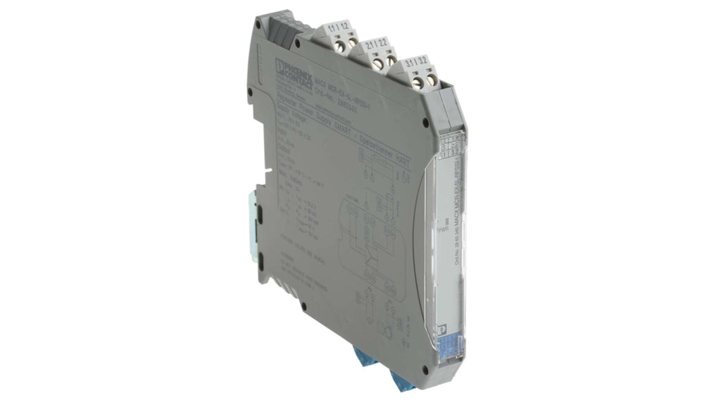 Amplificatore di isolamento Phoenix Contact, 1 canale, tensione di alimentazione 19.2-30V cc, tensione di isolamento nominale 300 Vrms, interfaccia HART, certificazione ATEX, corrente massima 93mA, corrente resistiva di sicurezza 600Ω, temperatura operativa -20 a +60°C, grado di protezione IP20, montaggio su guida DIN, dimensioni 12.5x112.5x113.7 mm, materiale contenitore PA. Codice costruttore 2865340.