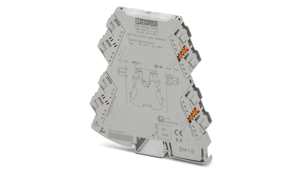 Isolatori passivi a 2 canali per l'isolamento elettrico dei segnali di corrente, alimentati da circuito chiuso, senza alimentazione ausiliaria. Gamma di ingresso 0-20 mA, 4-20 mA, gamma di uscita 0-20 mA, 4-20 mA. Tensione di alimentazione 9.6-30V cc, temperatura di esercizio -40 a +70 gradi Celsius, montaggio su guida DIN, certificazione ATEX. Collegamento con gabbia a molla. Codice costruttore 2901994.
