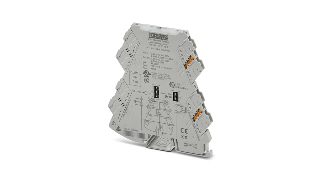 Condizionatore di segnale Phoenix Contact serie MINI MCR, progettato per montaggio su guida DIN, gamma di ingresso 0-24 mA, gamma di uscita 0-10 V, tensione di alimentazione 9,6-30 V cc, temperatura di esercizio da -40 a +70 gradi Celsius, certificazioni ATEX e IECEx, isolamento e amplificazione di segnali, un canale, terminazione a vite, conforme agli standard CE.