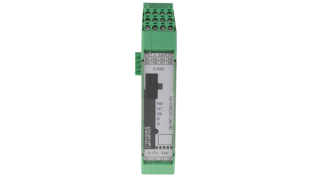 Gateway per il collegamento di fino a 32 dispositivi con PROFINET, 4 uscite digitali parametrizzabili, 8 ingressi digitali, protezione da inversione di polarità, montaggio su guida DIN, connettori inclusi, grado di protezione IP20, compatibile con PROFIBUS DP, Modbus, DeviceNet, CANopen, EtherNet/IP. Dimensioni: 99mm x 22.5mm x 114.5mm, standard EN 61131-2.