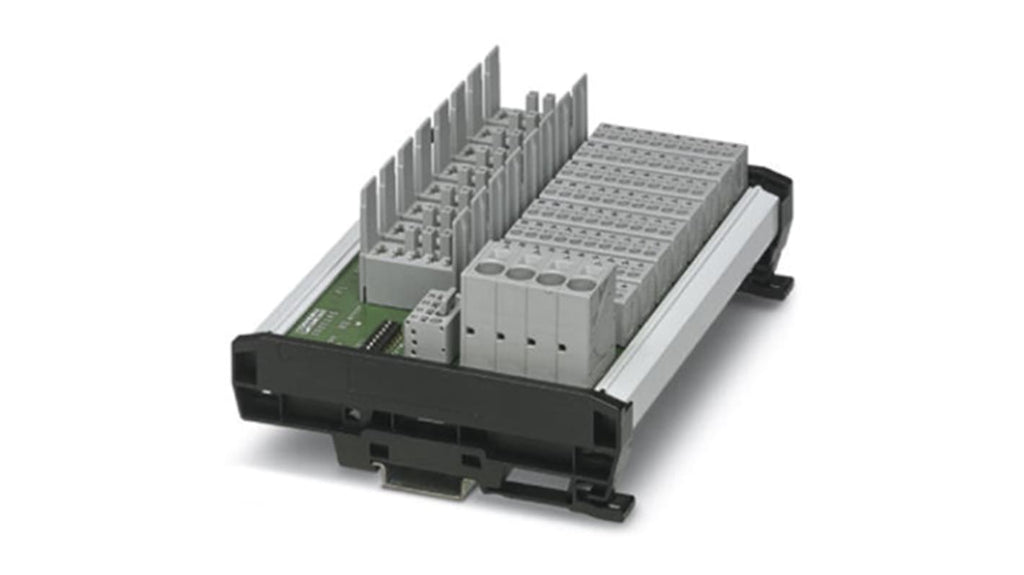 Protezione da sovracorrente per guida DIN, tensione nominale 130V ca, serie CBB 08 2X4RC-PT, supporta fino a 60 A, consente la protezione di quattro carichi contemporaneamente, dimensioni 127.8 x 170 x 70.8 mm, temperatura operativa da -30 a +60 gradi Celsius, montaggio su guida DIN, dotata di segnalazione di gruppo remota e connessione per contatti relè. Marchio Phoenix Contact, codice costruttore 2905240.
