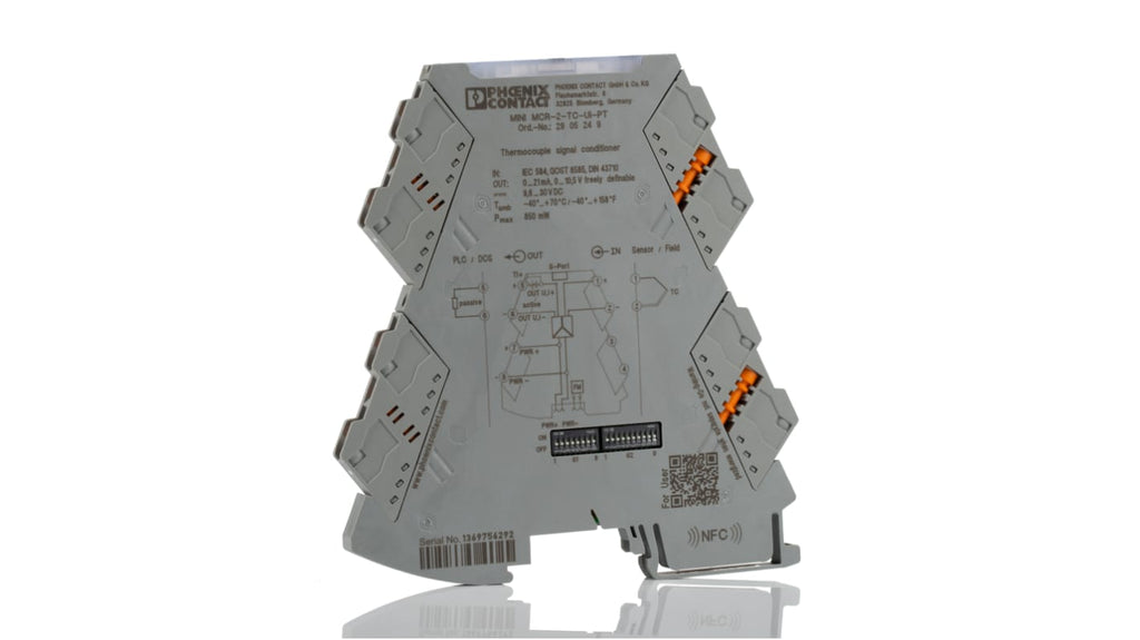 Condizionatore di segnale Phoenix Contact, montaggio su guida DIN, grado di protezione IP20, convertitore di temperatura per termocoppie, segnale in uscita corrente e tensione, gamma di ingresso -250 a 2500 gradi Celsius, gamma di uscita 0 a 21 mA, 10 a 10,5 V, tensione di alimentazione 9.6 a 30 V cc, certificazione ATEX, temperatura di esercizio -40 a +70 gradi Celsius, interfaccia micro USB tipo B, terminazione a innesto.