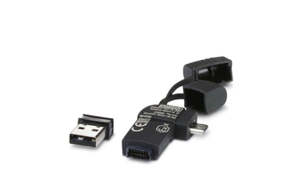 Adattatore di programmazione Bluetooth per Gateway di interfaccia sistemi e dispositivi MINI Analogue. Interfaccia USB e S-PORT per programmazione e monitoraggio wireless. Compatibile con trasduttori di misurazione e PLC Logic. Terminazione a innesto, certificazione ATEX. Serie IFS-BT-PROG-ADAPTER, codice costruttore 2905872, marchio Phoenix Contact.