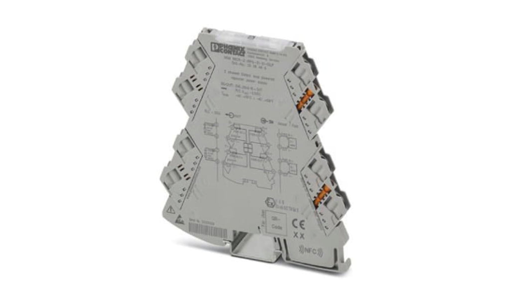 Isolatori passivi a 2 canali della serie MINI MCR per isolamento elettrico dei segnali di corrente, alimentazione a circuito chiuso, tensione di alimentazione 6-30V cc, gamma di ingresso 0-20 mA e 4-20 mA, gamma di uscita 0-20 mA e 4-20 mA, montaggio su guida DIN, collegamento con gabbia a molla, terminazione a innesto. Codice costruttore 2906448, marchio Phoenix Contact.