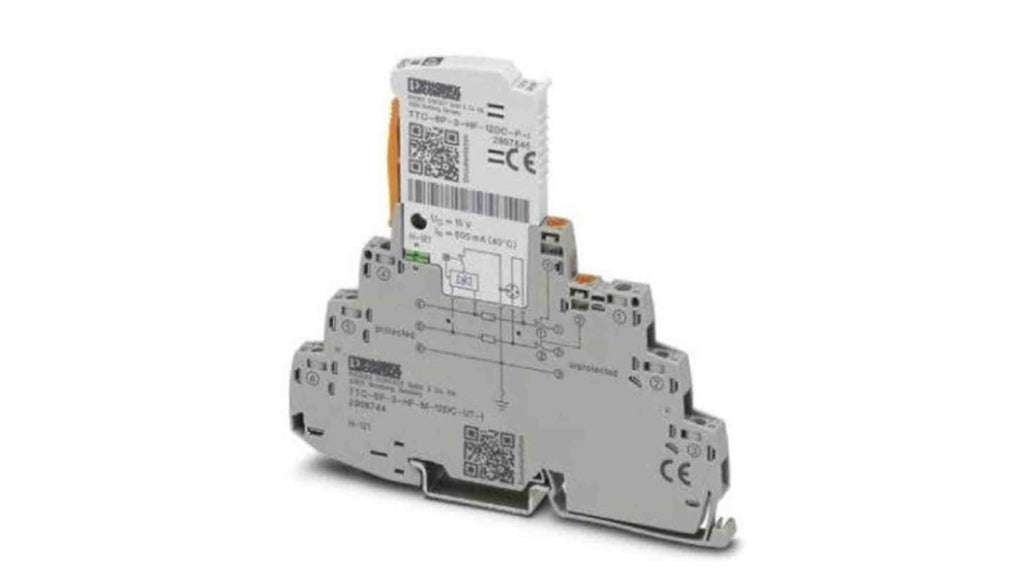 Dispositivo di protezione contro le sovracorrenti. Corrente massima di sovraccarico 10kA, corrente di scarica 0.5kA, montaggio su guida DIN. Tensione di protezione 145V, grado di protezione IP20. Materiale in poliammide, colore grigio chiaro. Temperatura ambiente da -40 a 85 gradi Celsius. Indicato per apparecchiature sensibili in ambienti difficili. Non parte della gamma "complete Line" di Phoenix Contact.