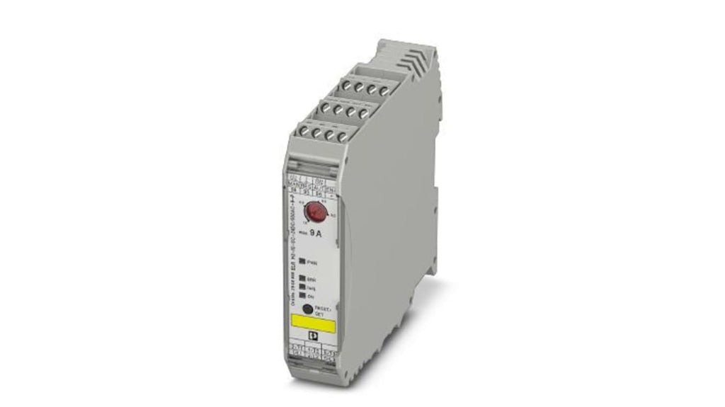Avviatore a motore ibrido per motori CA fino a 9 A, protezione da sovraccarico, arresto di emergenza PLe, monitoraggio della corrente, funzione di inversione. Montaggio su guida DIN, alimentazione tramite connettore DIN o circuito stampato. Modulo relè opzionale per stato. Codice costruttore 2908698, marchio Phoenix Contact, serie ELR H3-IS-SC-24DC/500AC-9-P.