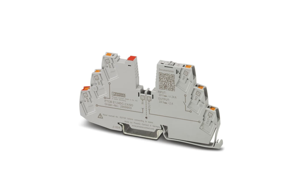 Interruttore elettronico di circuito Phoenix Contact, 2A, 24V, 1 canale, montaggio guida DIN. Design compatto, limitazione di corrente attiva, monitoraggio remoto, ingresso di reset commutabile tramite telecomando. Codice costruttore 2909903, serie PTCB.