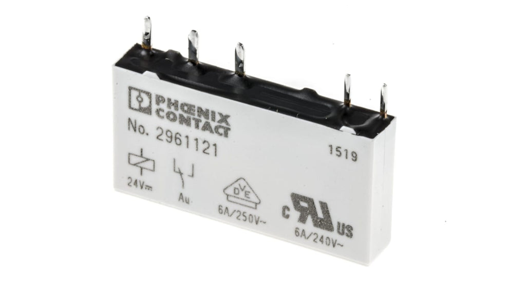 Relè di potenza Phoenix Contact, bobina 24V cc, configurazione contatto SPDT, montaggio su circuito stampato, corrente di commutazione 6A, tensione di commutazione massima CA 30V, tensione di commutazione massima CC 36V, resistenza bobina 3390Ω, vita 20 milioni di cicli, temperatura operativa da -40°C a +85°C, dimensioni 5 x 15 x 28mm, materiale contatto placcato oro, conforme a EN 50178 e EN 61810-1.