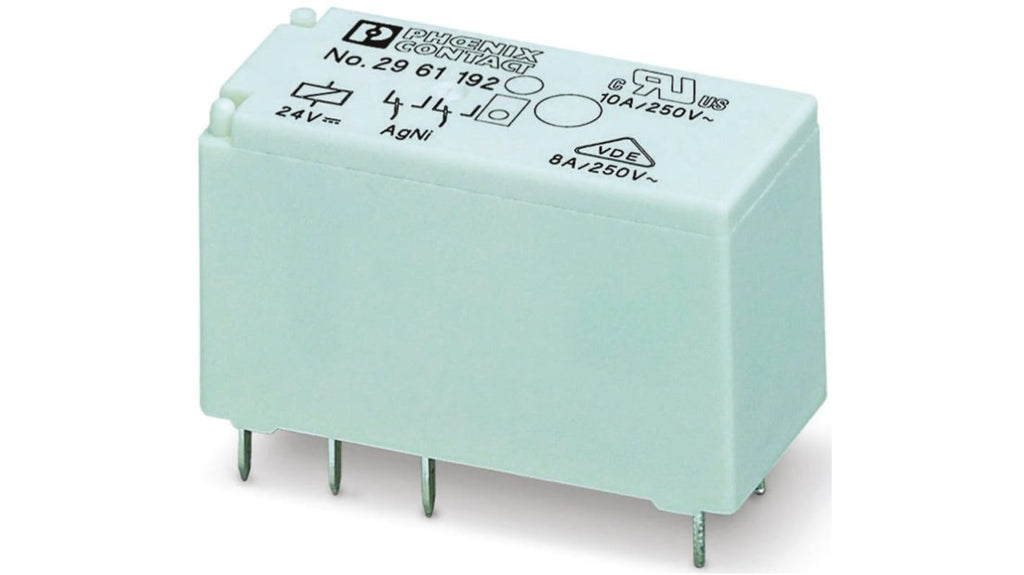 Relè di potenza Phoenix Contact, serie REL-MR-24DC/21HC AU, SPDT, bobina 24V cc, montaggio su circuito stampato. Corrente di commutazione 50mA, tensione di commutazione massima CA 30V, CC 36V. Dimensioni 12.7mm x 29mm x 15.7mm, resistenza bobina 1440Ω. Operatività da -40°C a +85°C, contatti placcati oro, potenza di commutazione massima CC 384, CA 4 kVA. Conforme a IEC 60255, EN 50178, EN 60730.