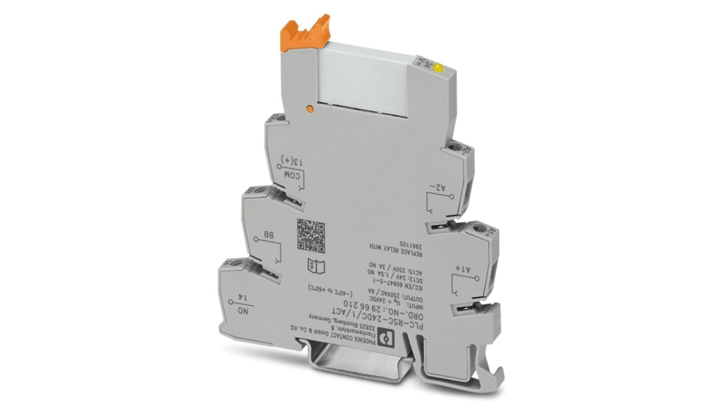 Modulo relè per guida DIN, serie VARIOFACE, Phoenix Contact. Adattatore V8 per collegamento di 8 relè o accoppiatori ottici a cavo D-SUB 15 vie, quattro slot di collegamento, morsetti a vite, indicatori LED, diodi per soppressione coil. Potenza nominale 1500 VA a 250 V, vita meccanica 1 x 10 milioni di operazioni, dimensioni 6,2 x 94 x 80 mm, temperatura operativa massima 60°C. Ampia gamma di accessori disponibili.