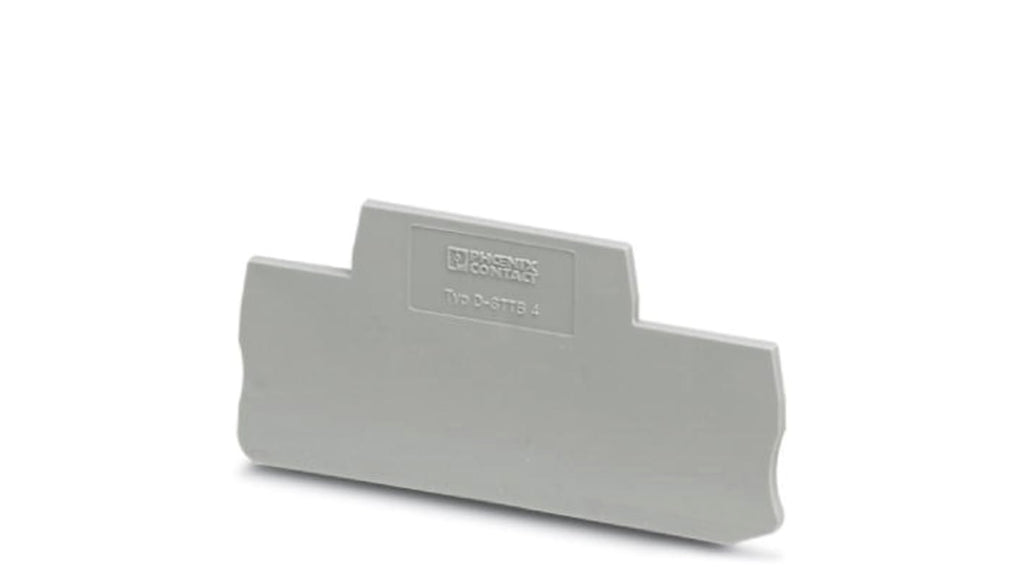 Coperchio terminale per morsettiera a gabbia a molla, serie D-STTB, compatibile con terminali per guida DIN. Design compatto, montaggio su guide DIN NS 35/7.5 e NS 35/15. Sezione trasversale da 0.08mm² a 1.5mm². Materiale poliammide, colore grigio, contatti in rame placcato. Certificazione ATEX EX per aree potenzialmente esplosive. Autorizzazioni UL, CUL, CSA. Codice costruttore 3030462.